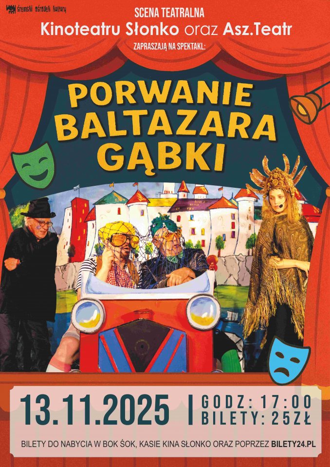 Scena teatralna Kinoteatru Słonko oraz Asz.Teatr zapraszają na spektakl „Porwanie Baltazara Gąbki”.
